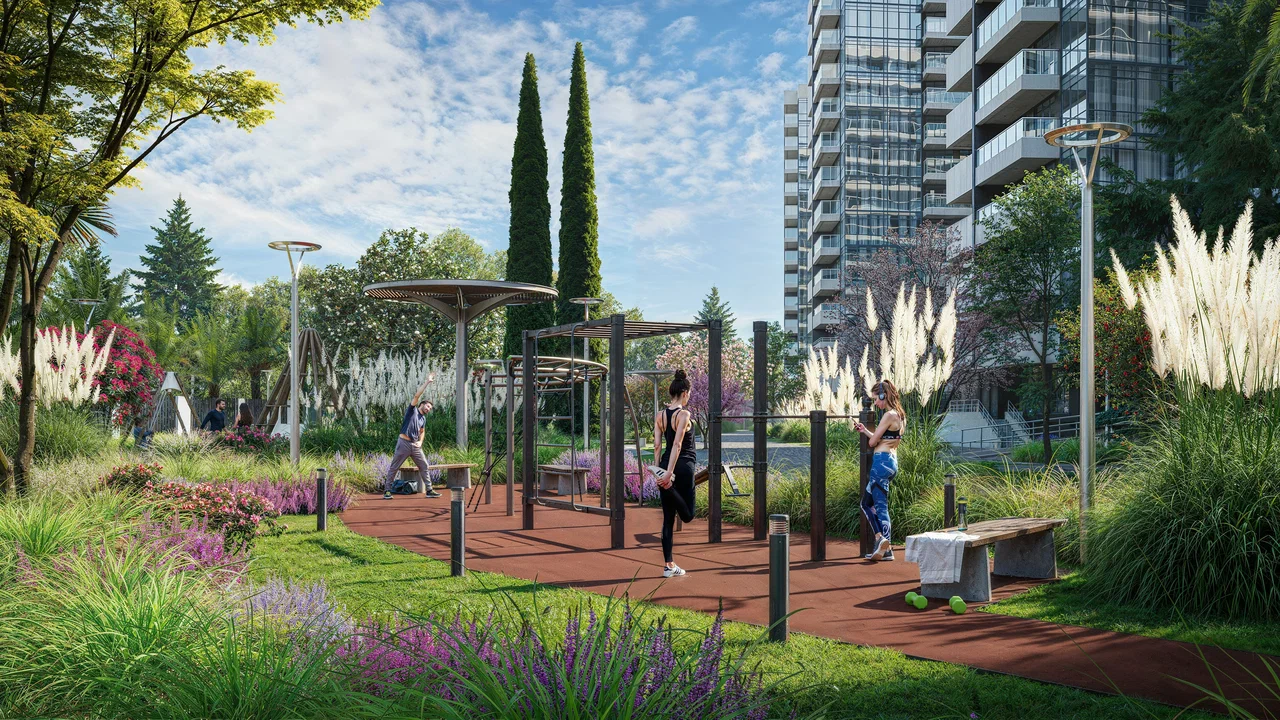 Пространство для прогулок и спорта. Общая протяжённость таких зон в комплексе — более 1 километра.